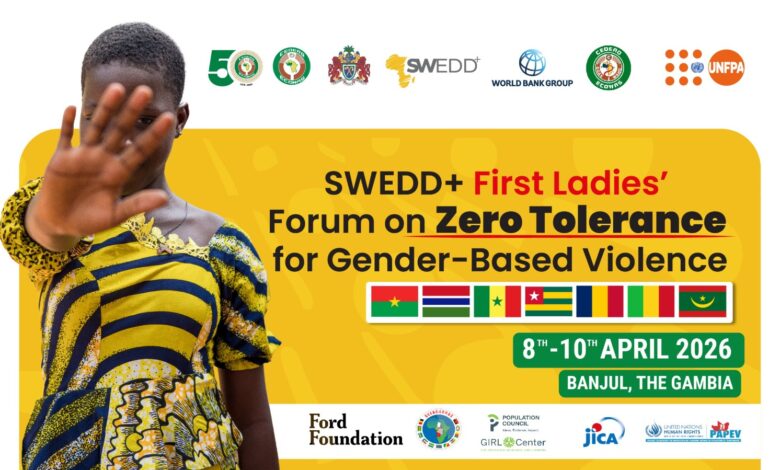 Les Premières Dames des pays du SWEDD+ poursuivent sans relâche leur lutte contre les violences basées sur le genre. Du 8 au 10 avril 2026 à Banjul, en Gambie, se réuniront dans le cadre d’un Forum de haut niveau visant à promouvoir la tolérance zéro à l’égard des violences basées sur le genre en Afrique de l’Ouest et du Centre.